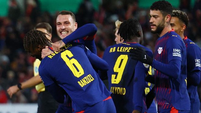 半场:科特布斯0-3莱比锡,鲍姆加特纳双响,巴卡约科破门