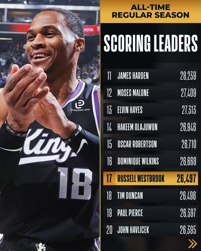 NBA历史三双榜排名!威少断崖领先所有人 但含金量却是最低的?